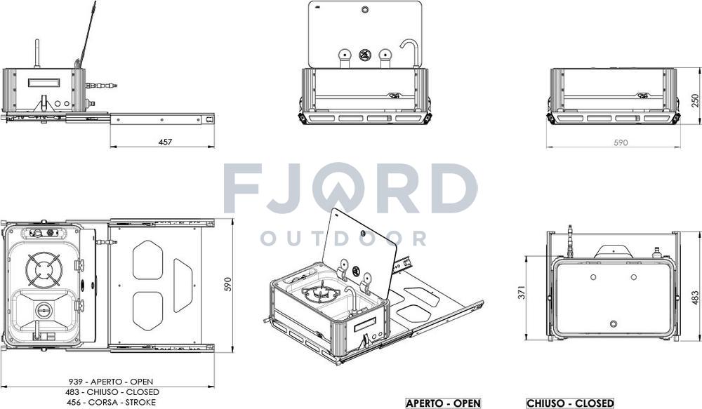 De CAN Keuken kan je uit een serviceluik of garage schuiven zodat je makkelijk kan buiten koken. Er zijn 2 uitvoeringen een korte deze komt in de breedte eruit over de smalle kant van de keuken. De lange uitvoering komt in de lengte over de brede kant van de keuken uit de bak.