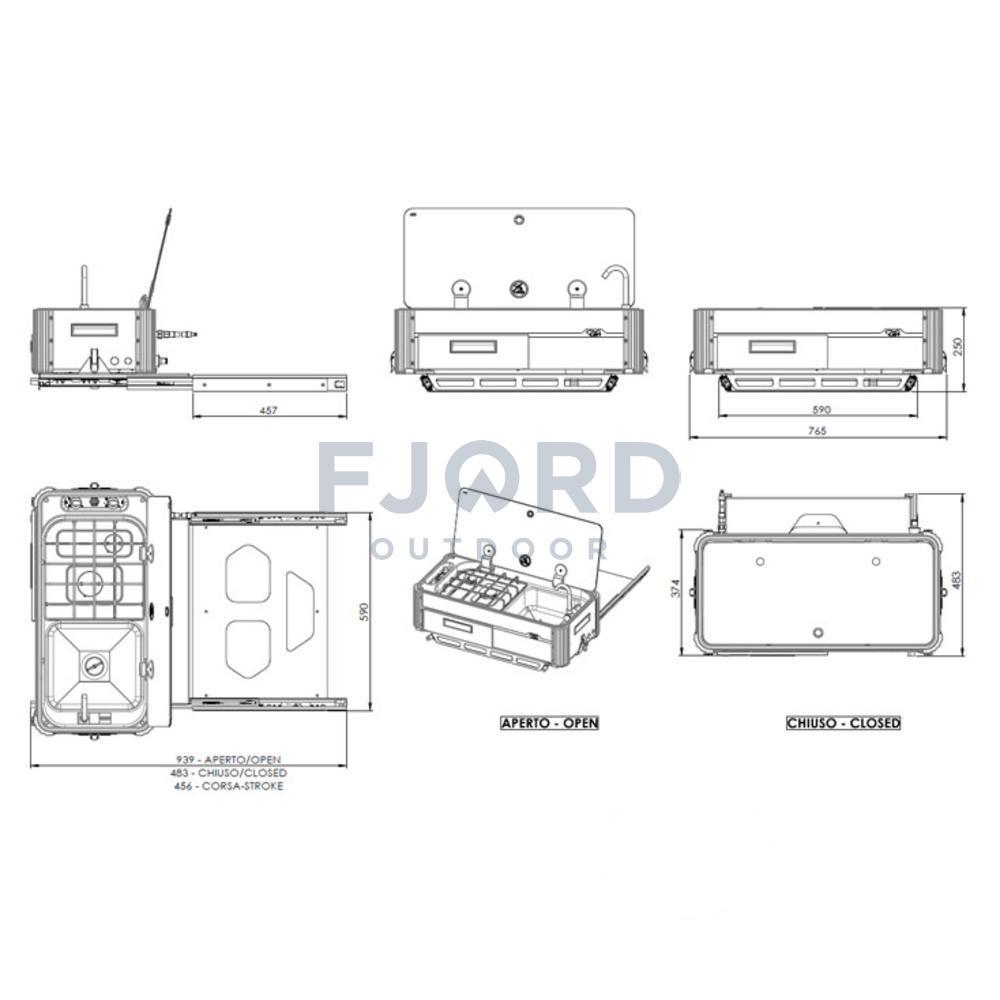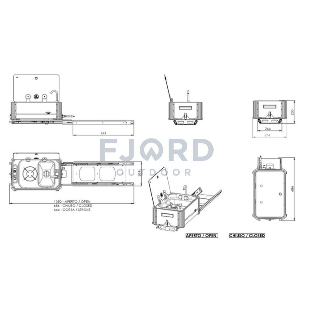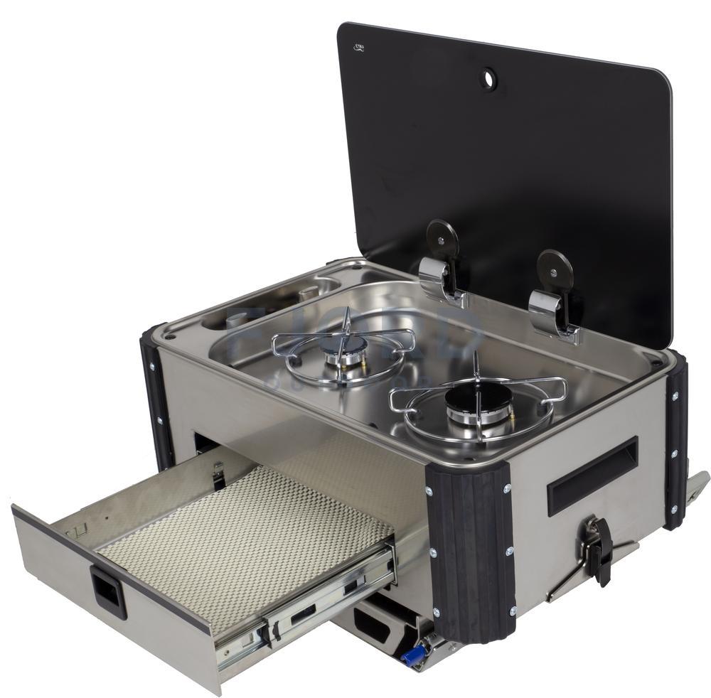 De CAN Keuken kan je uit een serviceluik of garage schuiven zodat je makkelijk kan buiten koken. Er zijn 2 uitvoeringen een korte deze komt in de breedte eruit over de smalle kant van de keuken. De lange uitvoering komt in de lengte over de brede kant van de keuken uit de bak.