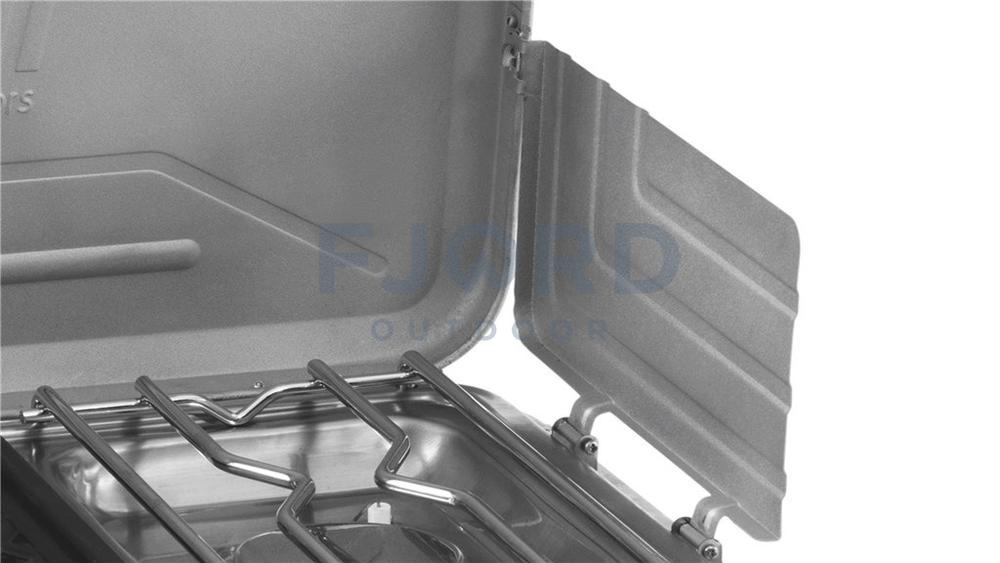 Dit kookstel heeft twee aparte, individueel bedienbare roestvrije stalen branders en een afneembaar rooster voor makkelijk schoonmaken. Het windscherm op het Gourmet kookstel met 2 branders en deksel zorgt voor optimale prestaties. * Materiaal roestvrij staal / staal * Afm. (opgevouwen) 46 x 25 x 9 cm (BxTxH) * Gewicht Ong. 2,2 kg * Source Gas