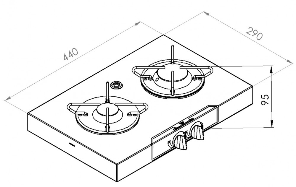 Navy Load Kookplaat Vrijstaand 2-Pits 290x440