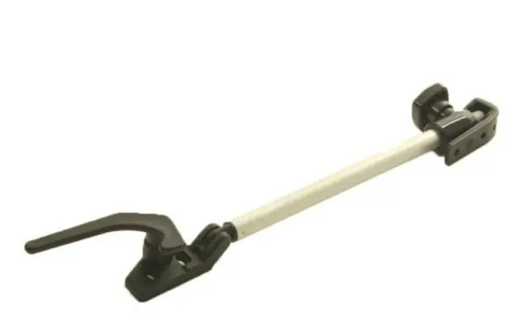 Uitzetter verstelbaar met vastzetknop. Zowel in linkse als rechtse uitvoering verkrijgbaar. Gezien van de binnenkant caravan.