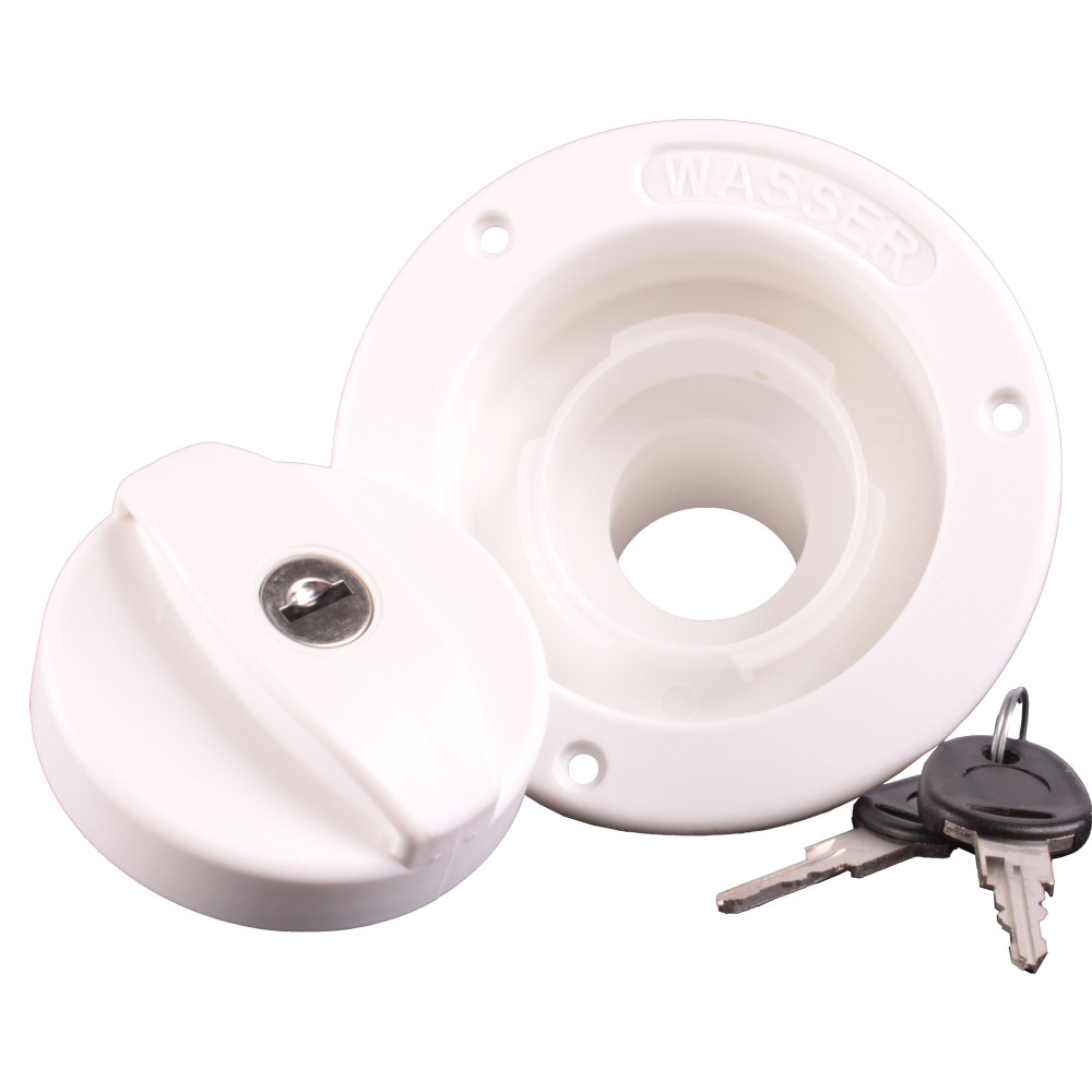Voor inbouw in de buitenwand van uw caravan, kampeerauto etc. Voor het vullen van uw watertank. Kunststof uitvoering, met ontluchting en bajonetsluiting. Inbouwmaat 80mm. Slangaansluiting 40mm. Compleet met slot en 2 sleutels.