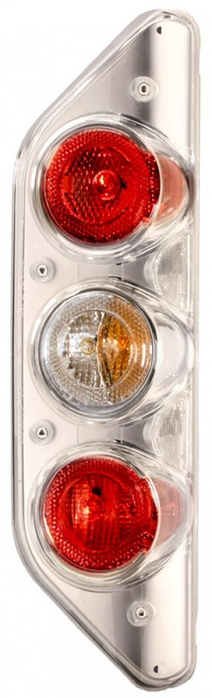 Caraluna Modular is voorzien van de functies: achterlicht, remlicht, knipperlicht, mistlicht, achteruitrijlicht en zijmarkering met reflector. Het lamphuis is chroom kleur. Rechterzijde voor verticale montage.