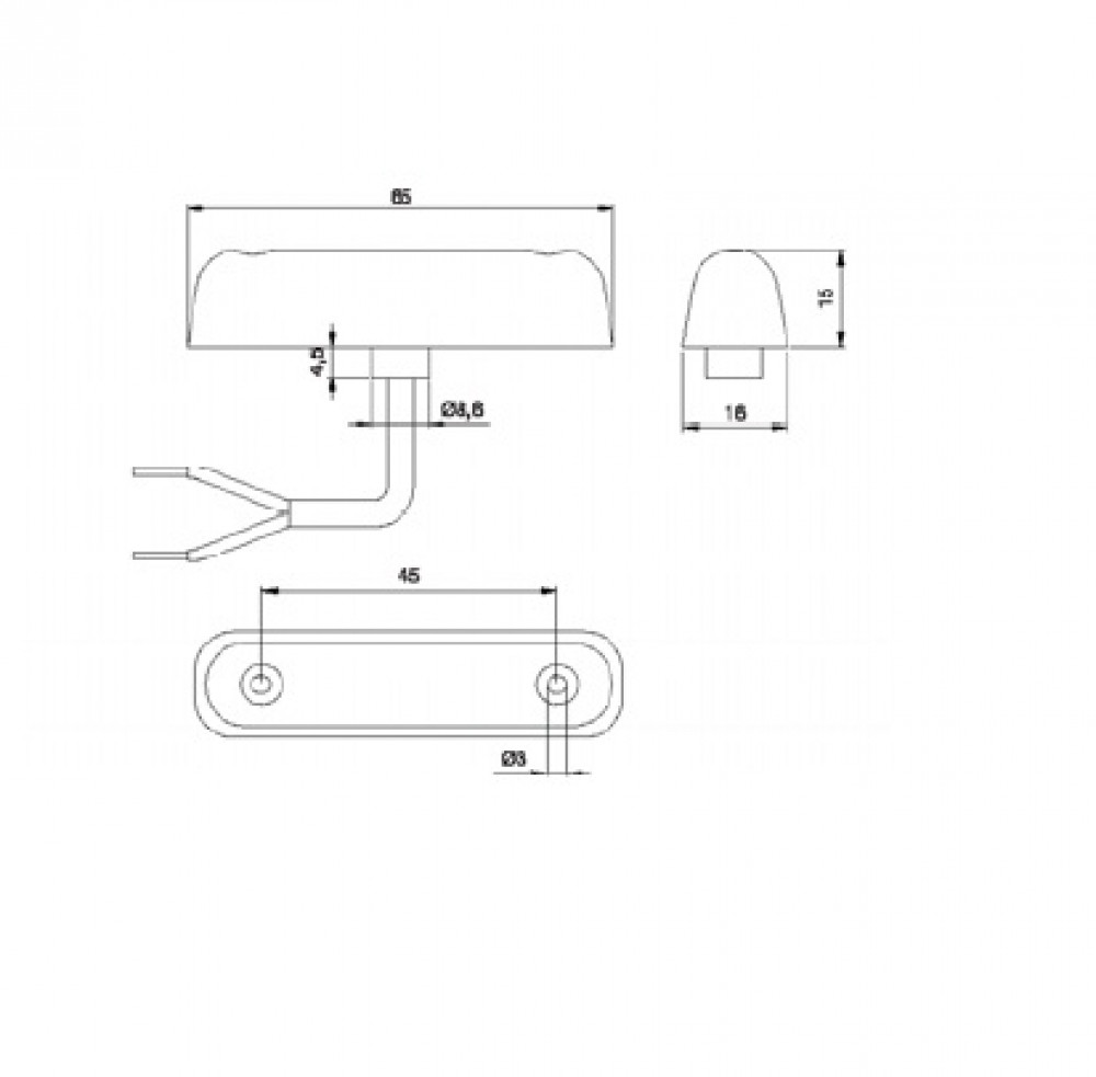 Breedtelicht rechthoekig opbouw LED met 4 witte LEDs. Met 25cm kabel.