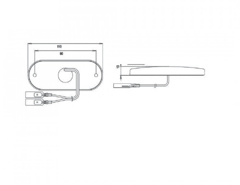 Zijmarkering LED met reflector. Voorzien van steekstekker aansluiting en 10cm kabel.